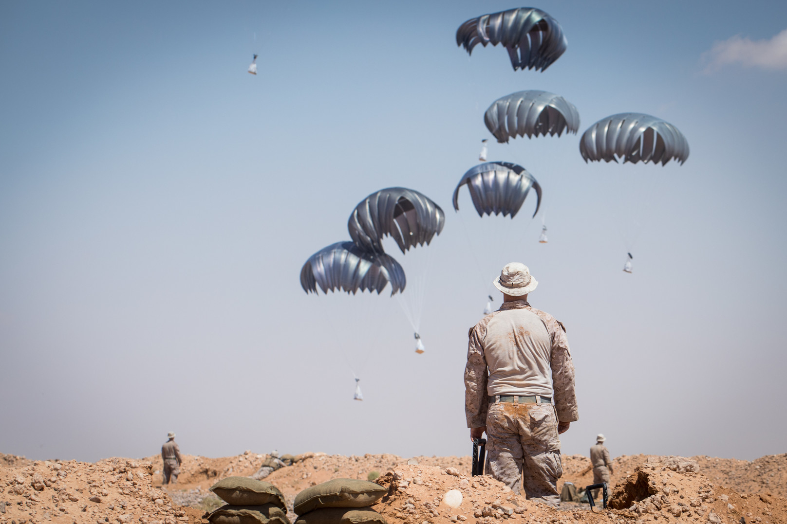 2,000 troops in Syria give the US a say in shaping the future of Syria, which must now be regarded as a territory without a functioning government. The question is how much of a say? Pictured: US Marines observe as supplies are dropped near At-Tanf Garrison, Syria on September 7, 2018. (U.S. Marine Corps photo by Cpl. Carlos Lopez)