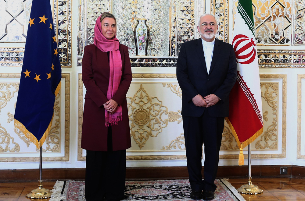 To show what a special place Iran's mullahs have in her heart, when in Tehran, EU foreign policy chief Federica Mogherini wears the full Khomeinist hijab, but when she visits other Islamic capitals she unleashes her peroxide blonde hair in full evidence. Pictured: Mogherini with Iran's Foreign Minister Javad Zarif on July 28, 2015. (Image source: European Union/Flickr)