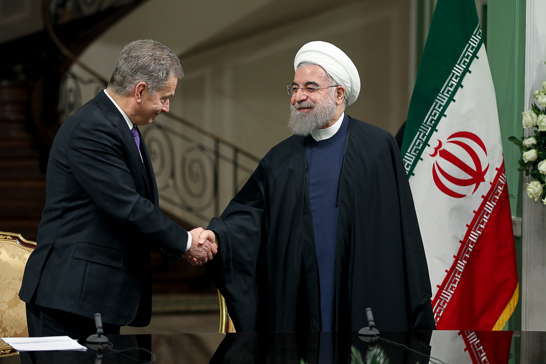Pictured: Finnish President Sauli Niinistö (left) with Iranian President Hassan Rouhani, in Tehran, on October 26, 2016. (Image source: Office of the President of the Republic of Finland)
