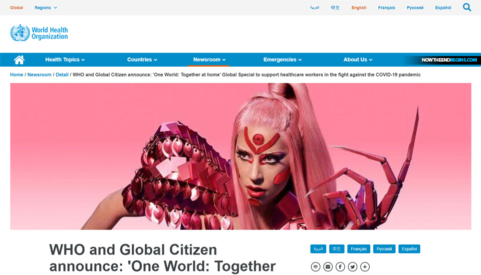 When a group calling themselves Global Citizen wants to bring you a One World 'Together At Home' concert headlined by a New Age Illuminati satanist like Lady Gaga, it's not just the end times, it is the end of times.