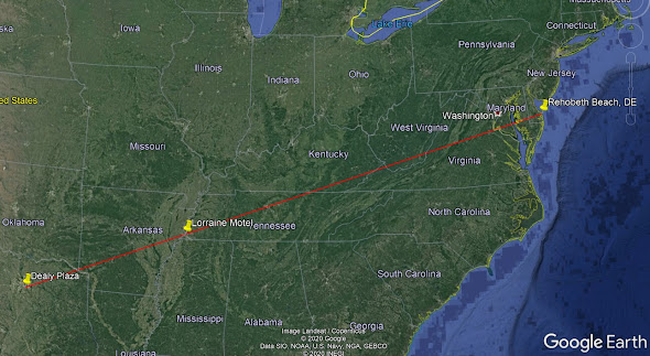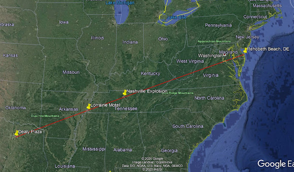Dealy Plaza—Lorraine Motel—Nashville explosion—Rehobeth Beach, DE. That gives us 4 places on the line, what are the odds? What does the line say to you?