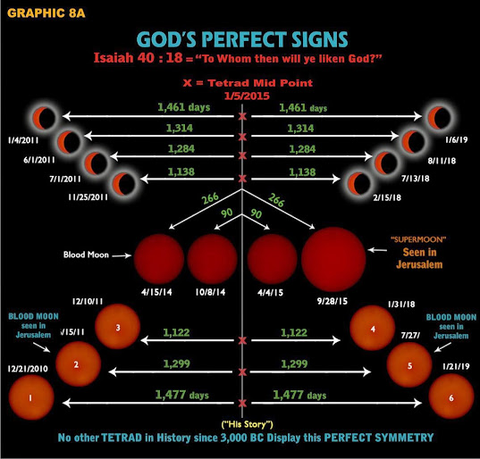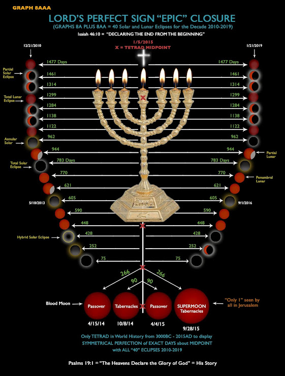 Do you remember the blood moon tetrad/ eclipse chart pictured above? The chart shows the last eclipse in the series of 18 symmetric eclipses was 1/21/19, of which I wrote the following in the post; Beware: This is It! The Final Blood Moon is Here! So with the last blood moon of the series about to occur, at the very least it is another sign, upon the already many signs, that the end times are approaching and major events could begin in the near future. I guess that was fulfilled as forecast. Now consider this chart that shows an additional 22 for a total of 40 Solar and Lunar eclipses that center on 1/5/2015.