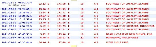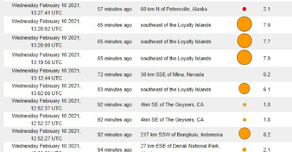 The Nibiru Earthquake Cycle The cycle runs from 1/25/21 to 2/14/21, here is what has happened so far. One site reported 3 ea M7.0+.