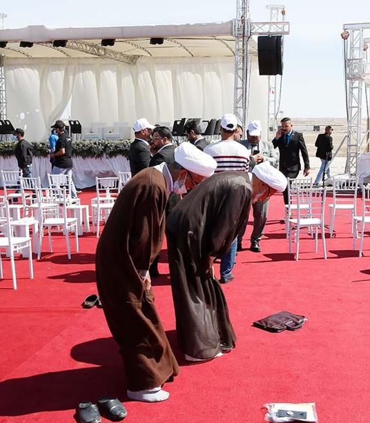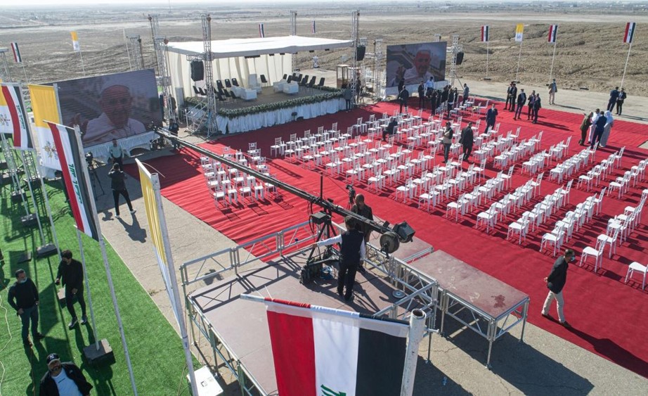 In this picture, the interfaith service at Ur was in sight of Baal's ziggurat temple.