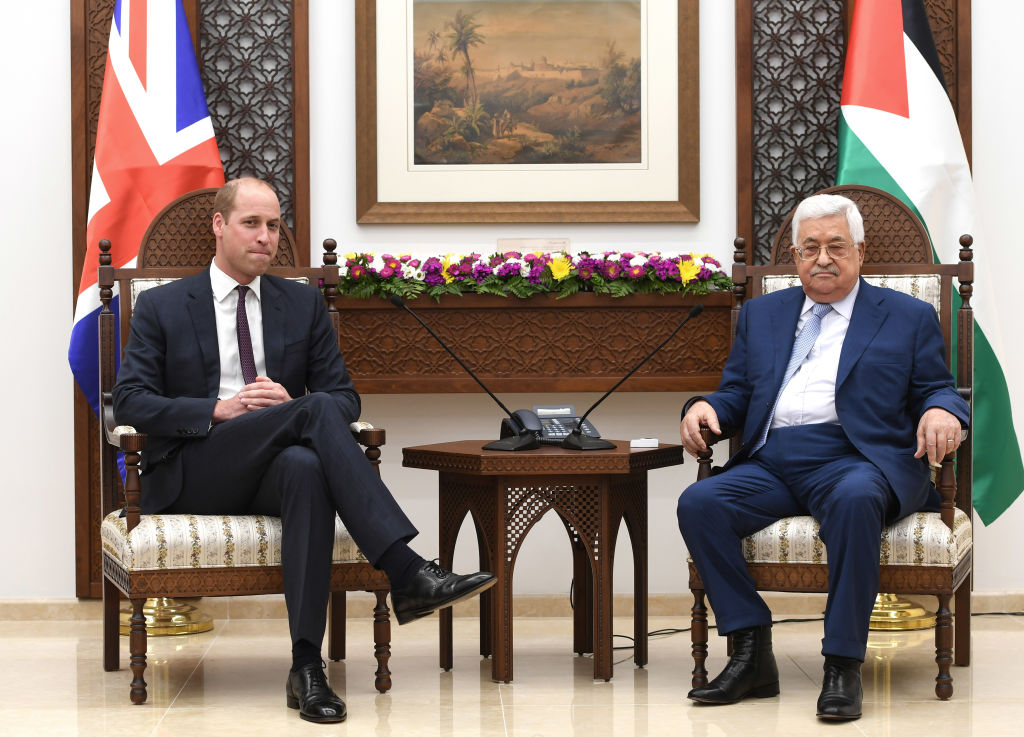 Prince William, Duke of Cambridge meets Palestinian Authority President Mahmoud Abbas during an official visit to in Ramallah, on June 27, 2018. (Photo by Joe Giddens - Pool/Getty Images)