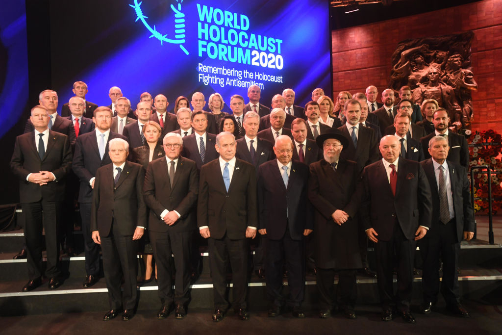 Pictured: World leaders and foreign ministers gathered in Jerusalem on January 23, 2020 to commemorate the 75th anniversary of the liberation of the Auschwitz death camp. (Image source: Getty Images/Pool)
