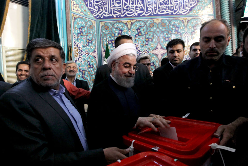 Once again, Iran's kleptocrat ruling elite is now trying to organize a general election to burnish its so-called "Islamic democracy". As usual, the authorities could try to manipulate the results in a number of ways such as refusing to register many would-be voters, pre-filling polling boxes and inflating the number of ballots cast in the provinces. Pictured: Iranian President Hassan Rouhani casts his ballot for the presidential elections in Tehran on May 19, 2017. (Photo credit should read Majid Azad/AFP via Getty Images)